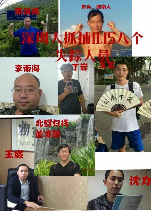 深圳大抓捕案,即2016年11月14日,深圳几名同住在龙岗杨美村的公民,包括邓洪成、萧兵、王威、李南海(网名火焱)、马志权(网名沈力)及丁岩,相约在住处附近聚餐后,翌日失联,寻找他们的朋友也陆续失联,包括王军、王建华及李江鹏等12人被关押。