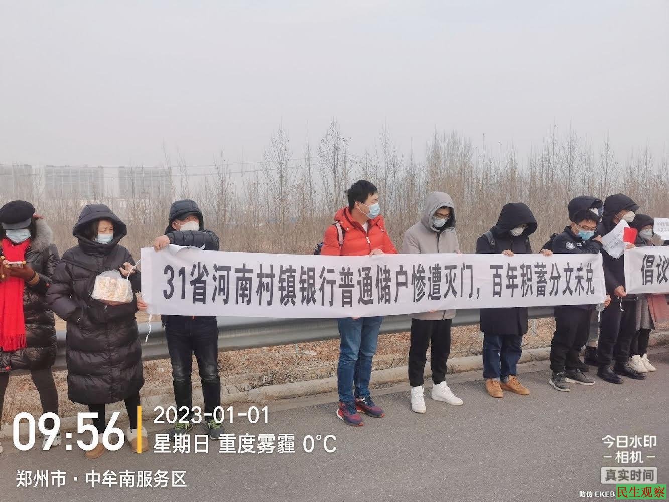 2023年1月1日,河南村镇银行大户突破重围,艰难到达郑州维权。存款50万元以上的储户,都被赋身份证黄码,火车,汽车,飞机,自驾自己的车出行,都会被大数据监控。所以此次采用分散到达郑州市边境再徒步去郑州的方式维权。