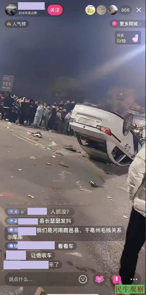 【民生观察2023年1月3日消息】河南周口鹿邑“老子故里”明道宫地标,当地年轻人在跨年夜及之后开始,持续几个晚上突破河南烟花爆竹禁令当街燃放烟花,遭遇警察出动抓捕,警察试图带走放烟花的人,但被民众围住,警车被掀翻,最后武警进场,多名年轻人被抓走。