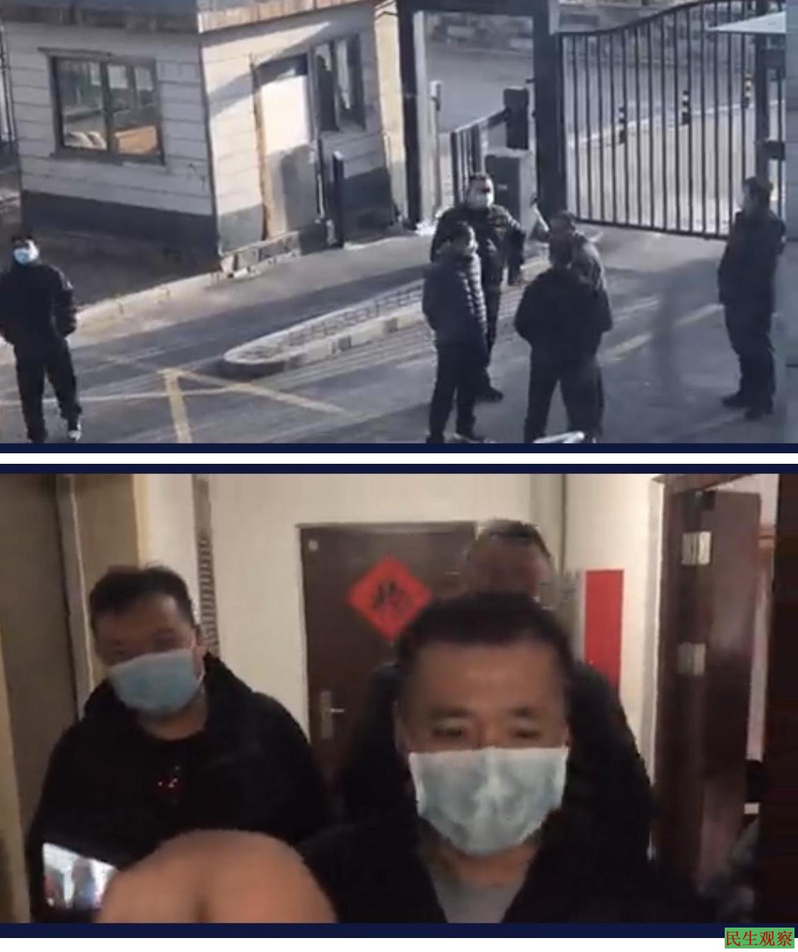 另一段视频显示,3月8日上午7点30分,在王全璋李文足家门口,4、5个带着口罩的不明身份人员堵在门口,阻止王全璋一家出门。王全璋问:“你们今天是怎么回事?来这么多人。”其中一名男子回答:“我们来跟你有什么关系?”王全璋:“你们来当然跟我有关系了。我现在送孩子去上学,别耽误我孩子上学。”与此同时视频显示,在王全璋所住小区的大门口还有6个身穿便衣的维稳人员守在楼下。