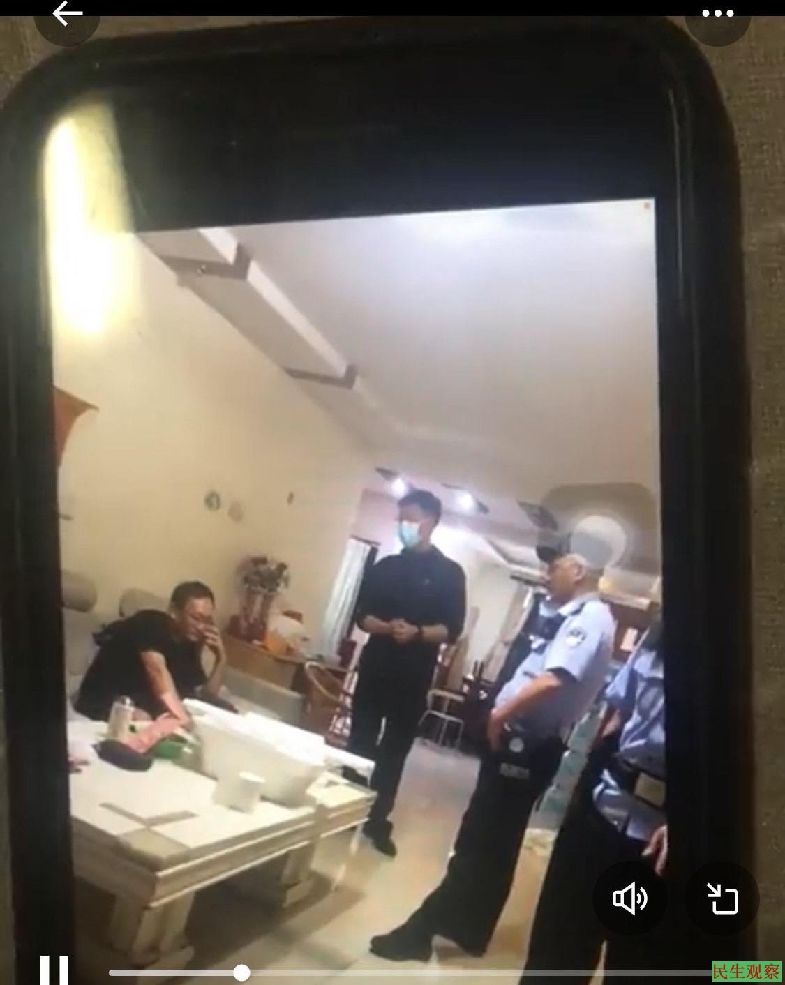 随后,两名民警和一名物业管理人员进屋查看,给两人各种逼迫。警察和物业管理人员在演双簧。物业管理人员罗列出两人各种问题,警察说两人对物业管理人员不尊重。警察自始至终没有出示执法文件,逼迫两人配合他们的不法行为。
