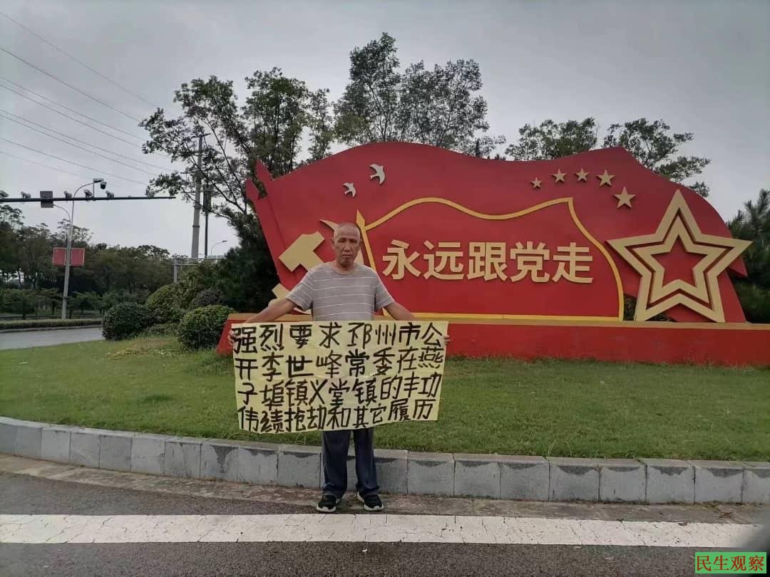 江苏呸州维权人士吴继新多次为安徽石新红举牌呼吁,同时也为全国其他访民举牌呼吁,吴继新在维权过程中多次遭到江苏当局的打击报复,判刑两次,劳教一次,刑事拘留,行政拘留无数次,目前吴继新最低的养老金被法院强行执行扣押抵法院枉法判决的违约金了养老金是公民最低生活保障的救命钱却被政府部门强行剥夺快三年了,吴继新说他只要活着就不会放弃自己的诉求追责到底。