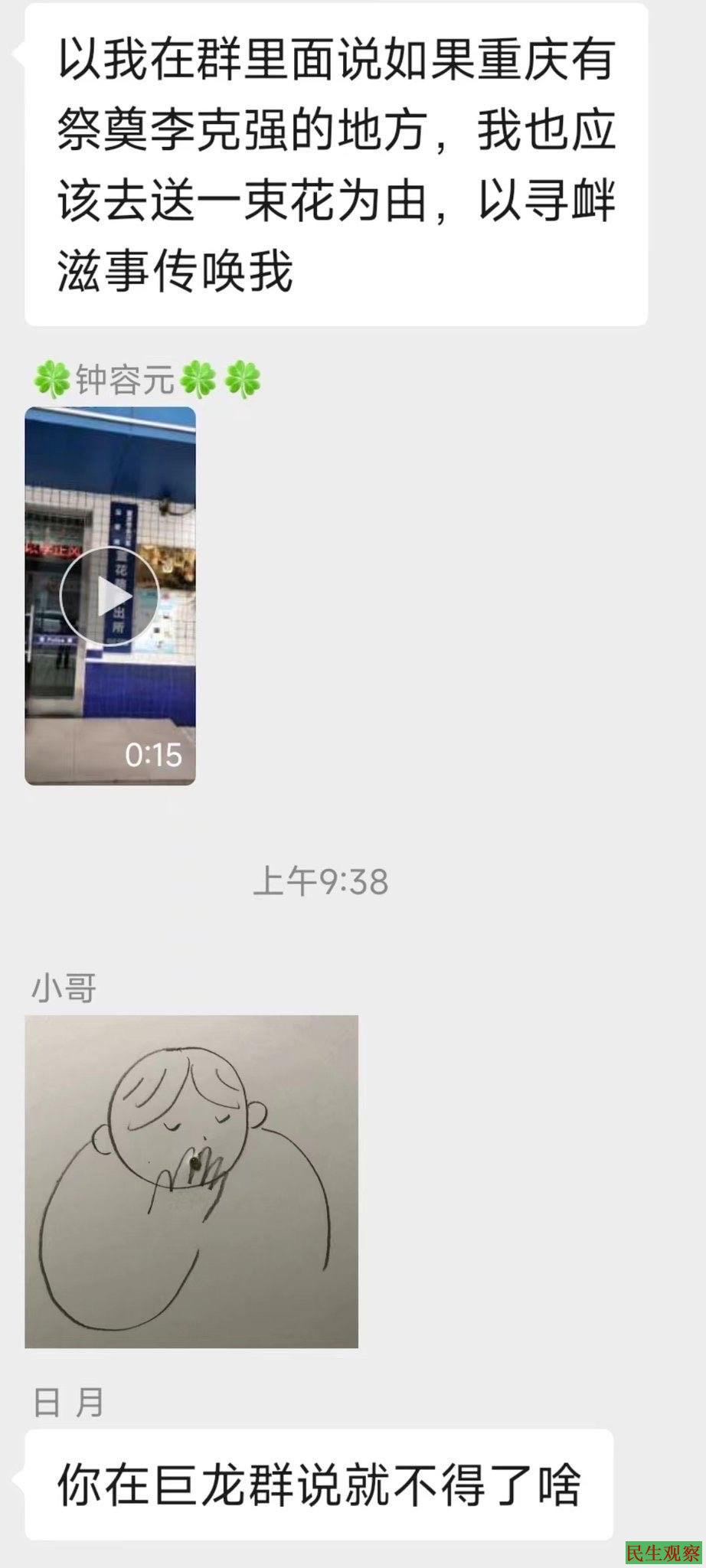 【民生观察2023年11月3日消息】近日,重庆一市民欲悼念前人民总理李克强,被重庆市永川区萱花路派出所以寻衅滋事传唤。