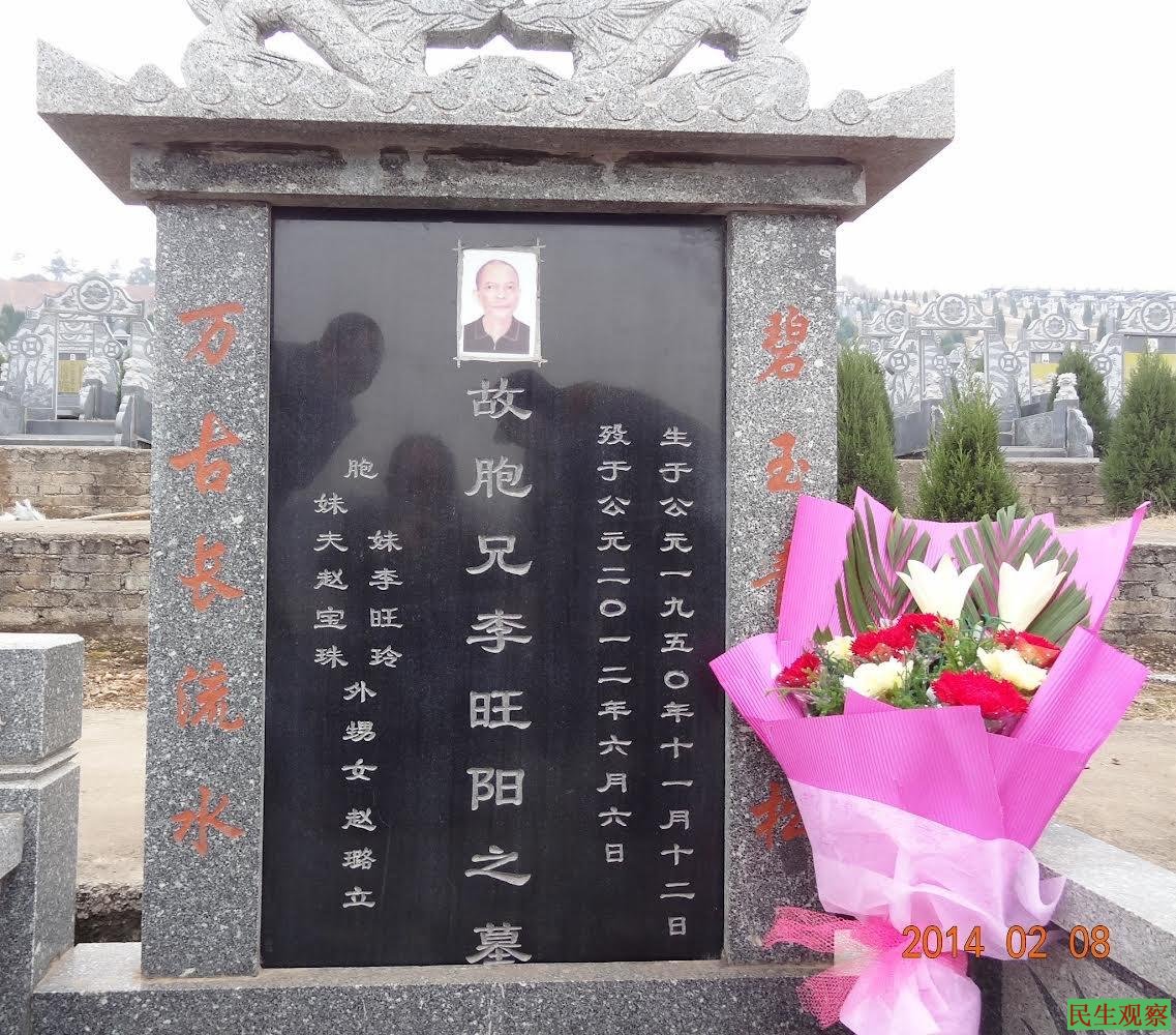 据悉,李旺阳是上世纪八十年代邵阳市工运领袖,八九六四后被当局以反革命罪判刑,两度入狱被监禁二十多年。2012年出狱后不久在医院被离奇“自杀”,距今已超过12年。自此,他的妹妹李旺玲和妹夫赵宝珠长期受到当局严密监控。