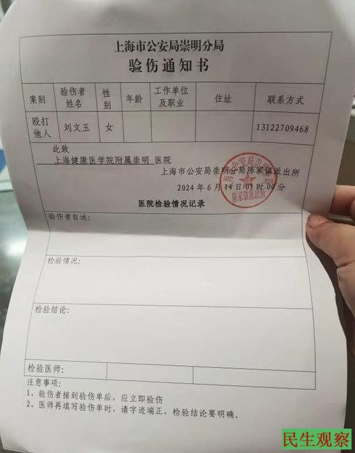 在伤情稍微稳定后,张燕红拨打了报警电话,警察出警后为俩人做了询问笔录,并开具了验伤通知书。