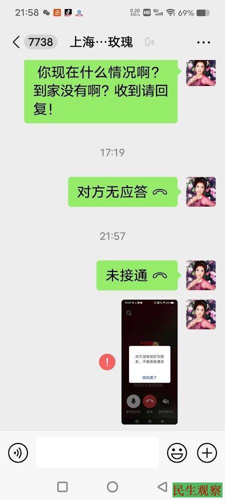 【民生观察2024年6月20日消息】近日,上海维权人士吴慧群前往北京国家信访局进行了上访登记,随即接到地方维稳人员的电话要求她返回上海,而吴慧群原定与朋友在北京的见面也无法成行,其朋友尝试多次联系她无果。截止今天,吴慧群已失去联系5天时间。