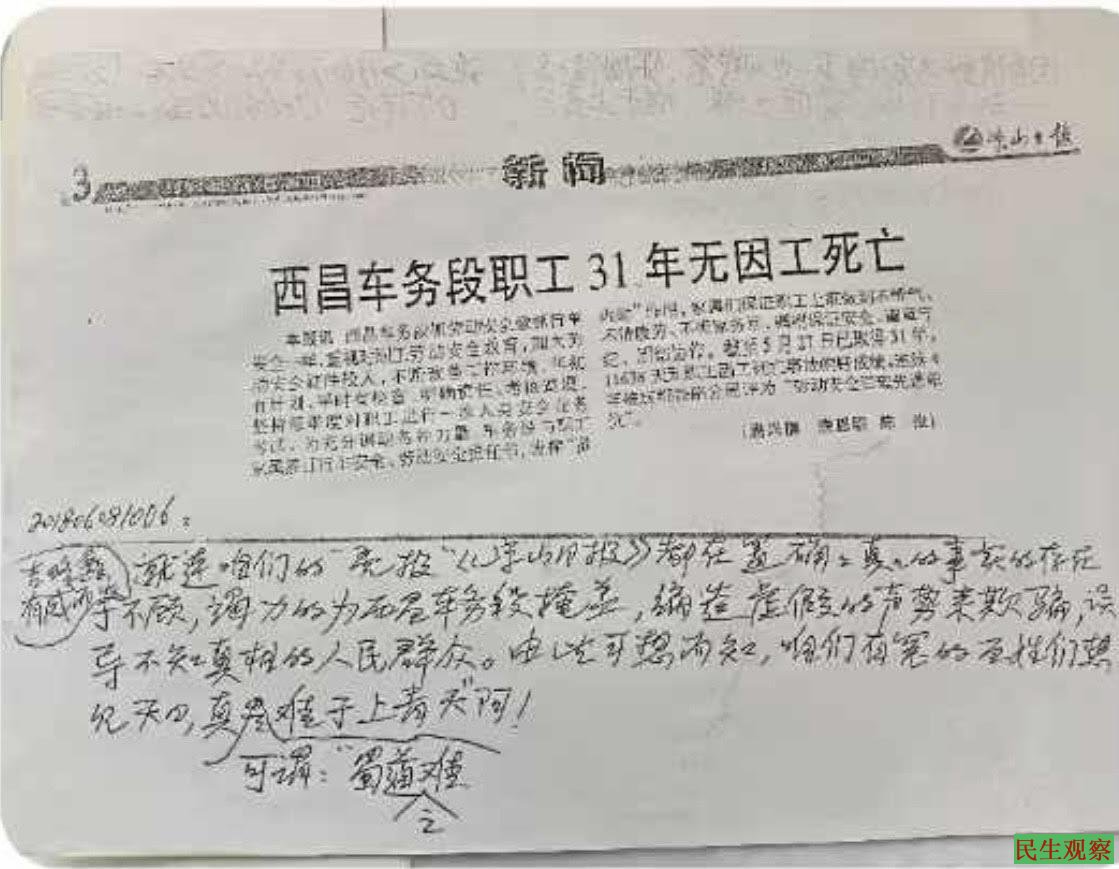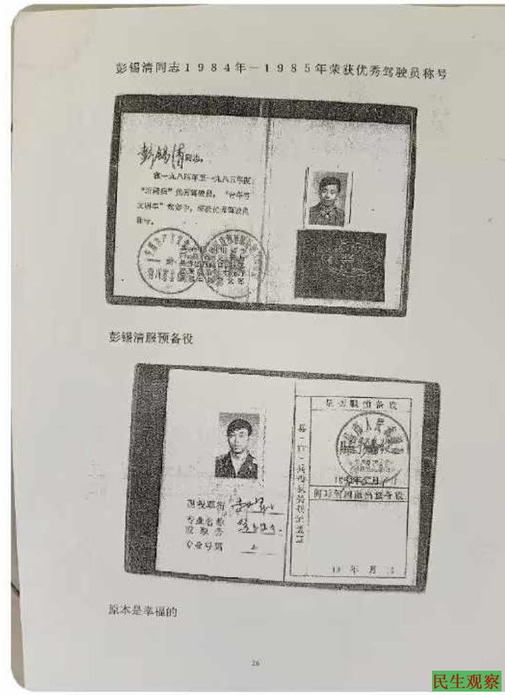 据悉,吉略鑫的丈夫彭锡清,报效祖国15年,1992年从军队光荣退役,被安置到中国铁道部成都铁路局西昌铁路分局西昌车务段工作。