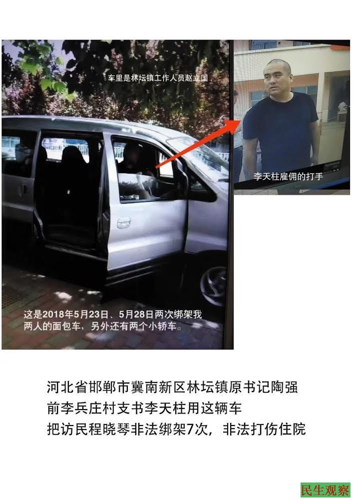 2025年3月19日,程晓琴在北京国家信访局反映问题,林坦镇一个叫孙伟的接访的,骗她出来,程晓琴没有出来,她刷了身份证,刷了身份证后出来,到20路站牌坐车到北京南站准备买票回家,程晓琴一看车上那么多人,就在幸福路下车,下车程晓琴就往前跑,丁字路口往北跑了20多米,被房伟平、赵文涛涉黑6人把她抬上一辆七座面包车。
