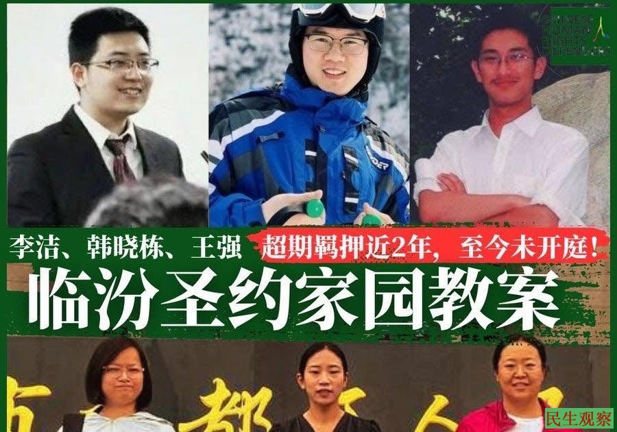 2025年11月12日,临汾圣约家园教会李洁弟兄的妻子李姗姗发布代祷信息称,李洁、韩晓栋因信基督以“诈骗罪”蒙冤被判3年8个月。