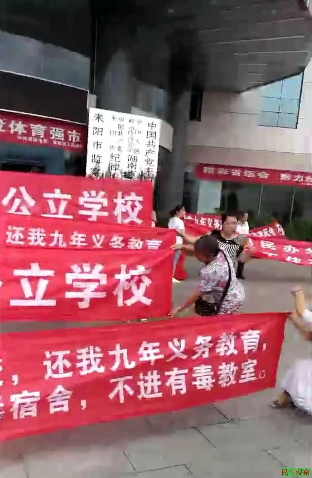【民生观察2018年9月3日消息】本网获悉,9月1日下午,湖南省耒阳市城区部分学生家长因教育资源分配不公,先后聚集到耒阳城区6所学校、市委、城北路与西湖路交汇处及107国道、高铁站等处拉横幅表达抗议,随后大量警察到场并粗暴的抓走多名抗议者。