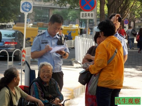 不惧清场外交部前静坐继续 连拖带拽老太太们坚守阵地