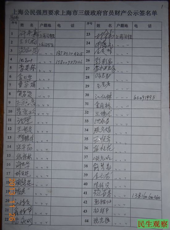 上海第二批公民(254人)要求三级政府官员财产公示 |