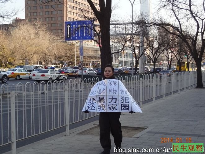 承蒙北京市公安局在我申请游行后的默许许可行为,2014年1月15日,北京时间上午10时整,俺准时于建国门地铁西南角出发,一路喊着口号,向国贸进发。