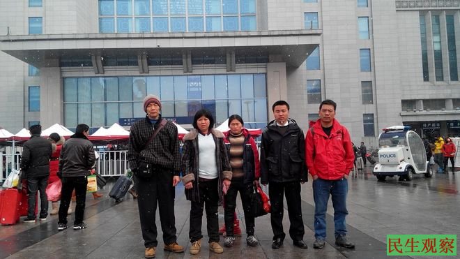民生观察工作室2014-2-7消息:据本工作室志愿者从江苏徐州发来消息,今天全国各地网友继续前赴后继奔赴山东等地,围观声援薛福顺“被自杀”案。昨天和今天,江苏徐州和山东兖州成为二大聚集地,在徐州,有昨天新赶到的江西维权人士黄宾,也有杨崇、刘喜珍、应立刚等被遣返至此的公民。据志愿者观察,徐州今天已聚集了二十多人。