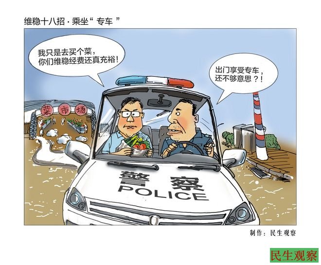 中国维稳十八招系列漫画与行为艺术之乘坐“专车”