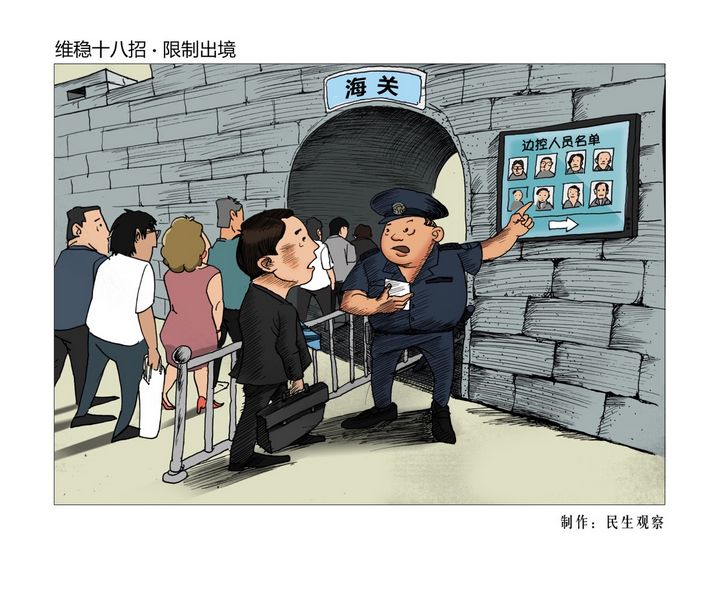 中国维稳十八招系列漫画与行为艺术之“限制出境”