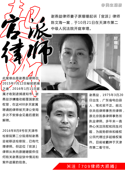 【海报】谢燕益律师妻子原珊珊起诉官派律师