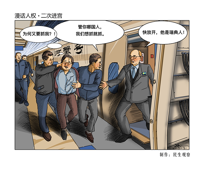 编按:1月20日,已刑满获释的瑞典籍香港书商桂民海,在两名瑞典外交官的陪同下坐火车去北京体检,行至途中桂民海被便衣警察登车带走。在此之后中国官方称,桂民海涉嫌非法与瑞典外交官见面并分享秘密信息。