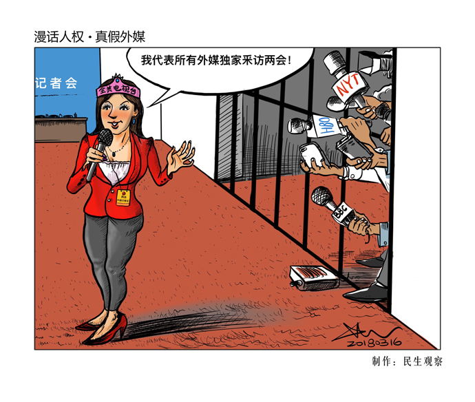 编按:今年两会中,一名红衣记者在提问时声称,自己是“全美电视台”的执行台长。但根据其官方网站,这家总部位于洛杉矶的广播公司过去曾与中国的官方电视台有合作关系。其总裁杰森·奎恩在领英上还称自己担任洛杉矶孔子学院院长,是一家道道地地的“假外媒”。