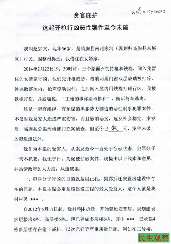 山东赵宗文遭开枪警告“工地的事你别在掺和”