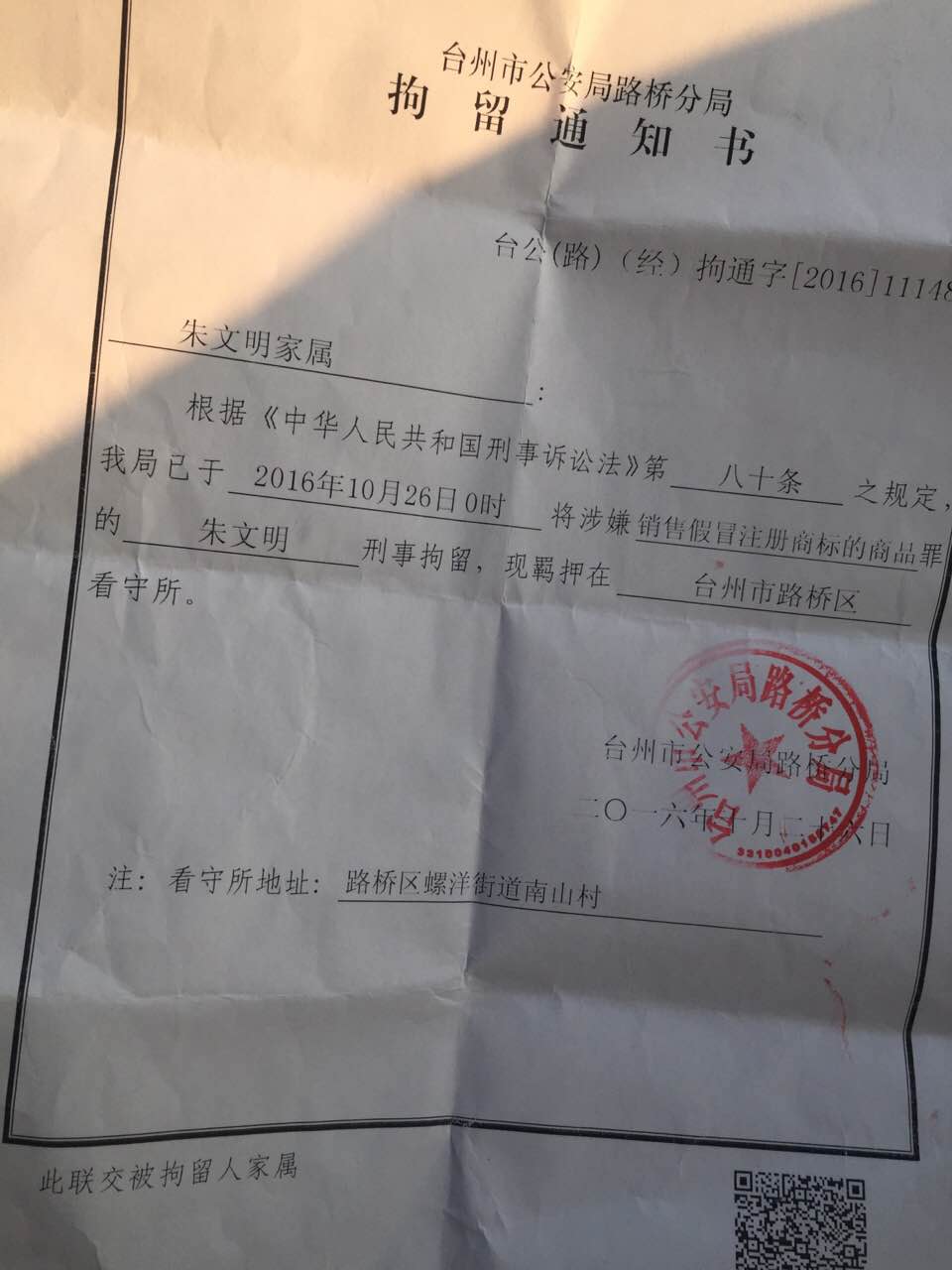 2016年10月21日深夜维权代表王海兵在家里被台州市公安局路桥分局边防派出所抓走,至今没有任何消息。在关押在拘留所12天后突然于2016年11月3日释放了王海兵,只给了一个释放证明,却不给行政处罚决定书。而被台州温岭市公安局强迫失踪了20多天的王梅福,家人至今毫无音信,是死是活都不知道。温岭市公安局局长沈云才对此负有不可推卸的违反党纪国法的责任!