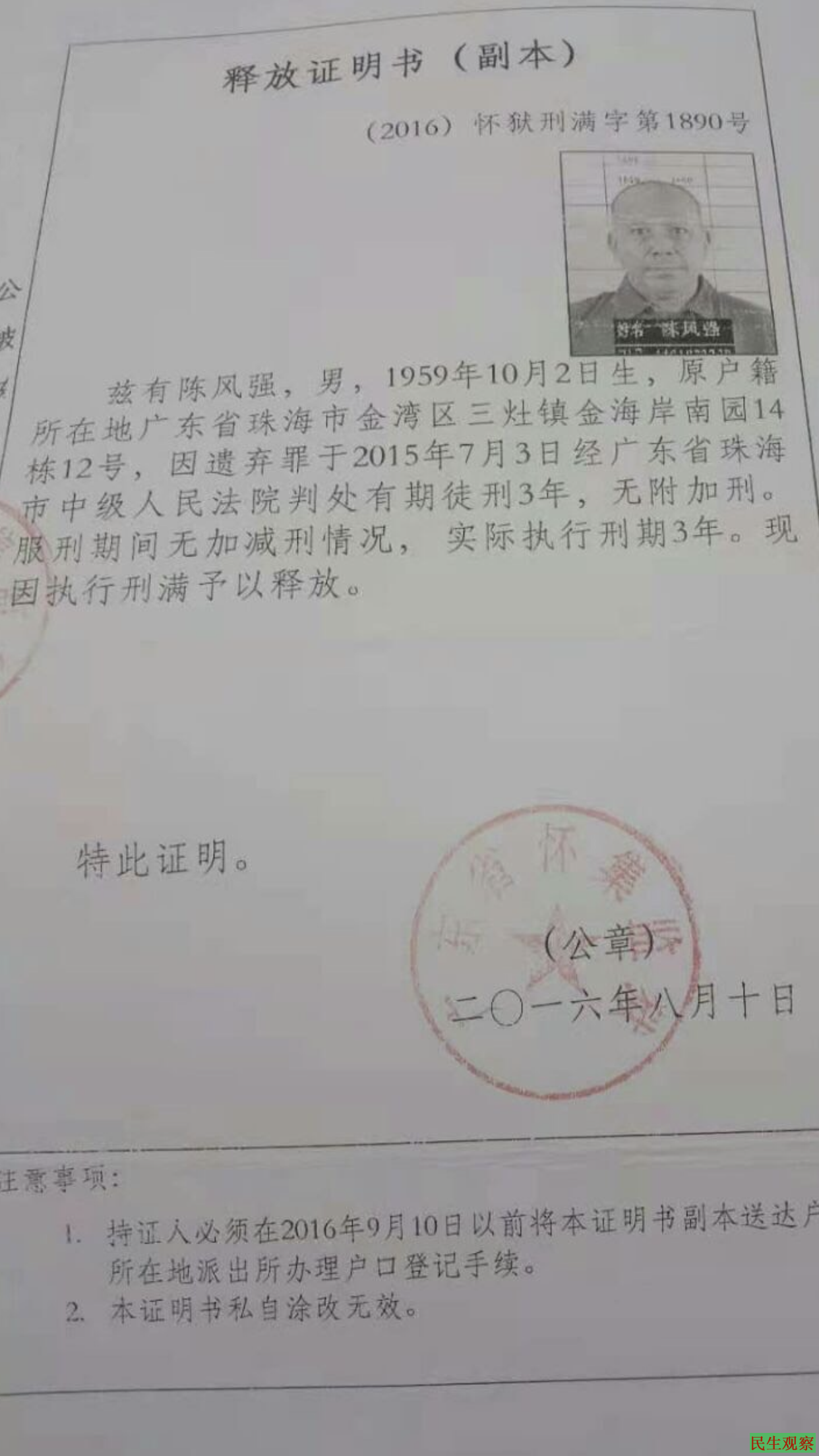 多次冤判入狱,刑满释放,不但问题未解决,反而被长期跟踪,令我们苦不堪言。政府部门霸王条款强迫交易,导致陈风强损失惨重,至今为止没有得到解决问题。