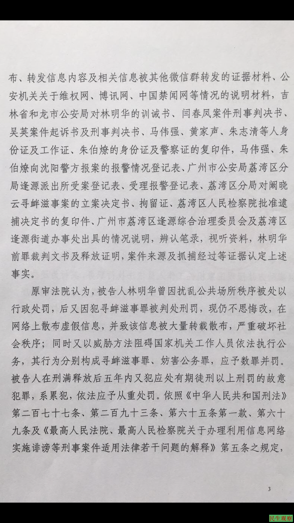 2020年11月23日辽宁铁西中级人民法院维持原判林明华被判刑3年为终审裁定。