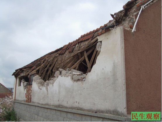 当时我们为了孩子上学方便,不在老家居住,对有关的补偿更是不明白。就在询问等待答复期间,还没有同意签字拆迁,2012年6月25号凌晨30分,一辆大铲车从我家房子后面铲我家房子,铲完以后匆匆离去。我家的房顶被铲塌了,整个房子的后面坡全铲没了,好好的房子铲成了“水帘洞”无法居住。