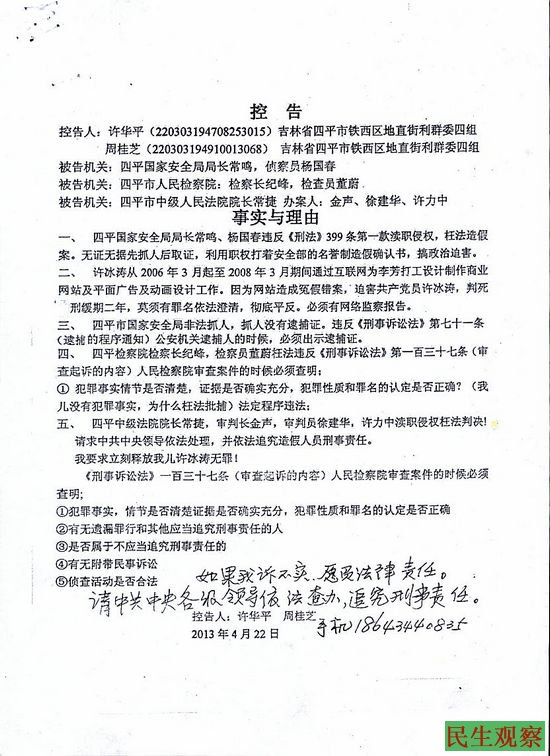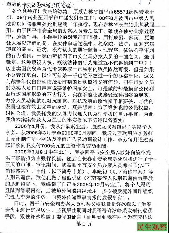 许冰涛父母的申诉信