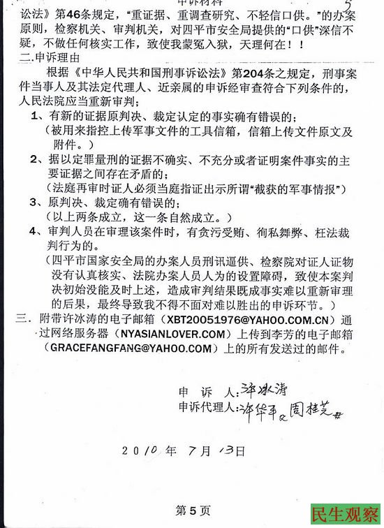 以上是许冰涛的申诉书