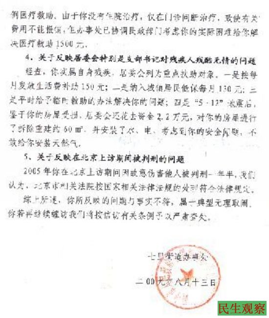 我于2009年8月10日向你处提出书面信访,反映的若干问题而与实际事实不相符。现逐条反驳: