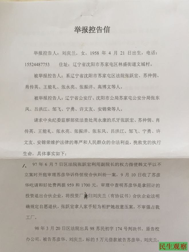 沈阳刘庆兰的举报控告信