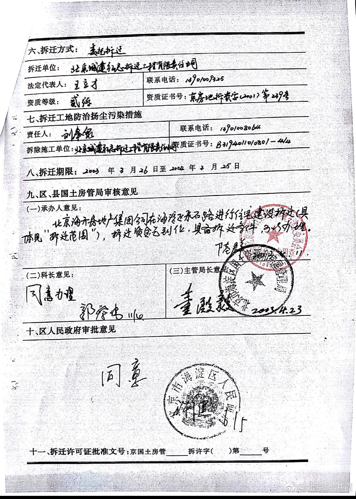 2003年海淀区住建委对海开房地产集团公司颁发拆迁许可证之初,开发商提交的申报材料中,关于被拆迁地区房屋状况及权属性质一栏,也未注明存在有产权不明确的房屋的记载,开发商于2003年、2006年对我家送达的被拆迁房屋评估报告明确注明铁家坟60号房屋产权人为我母亲,我和我的家人一直生活在铁家坟这片土地上,我们一没有失踪,二没有出国,这些都是有据可查的,什么时候我和我的家人就变成了下落不明、我家的房屋就变成了产权不明?!开发商在《人民日报》海外版刊登寻找产权人公告,《人民日报》本是政府和企业才能订得到的报纸,我们小老百姓,更是没有机会能够看到《人民日报》海外版,开发商的此一行径,无非是借用貌似合法的形式来达到其非法劫掠我家合法财产的目的,海淀区住建委居然能以政府行政公文的形式违法作出“拆除程序合法”的认定,公然用行政权力干预公安机关独立办案,与开发商沆瀣一气,试问,作为主管城市拆迁建设的职能部门,能不顾事实、不经调查核实,只偏听偏信开发商一家之言吗?!开发商说我家房屋属于产权不明确的情形,海淀区住建委就认同不明确吗?!如若开发商说北京不是中国领土的一部分,难道党和政府的工作部门也承认开发商说的是正确的吗?!
