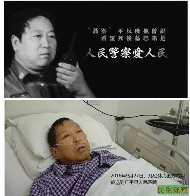 (二)、郑成月,原河北省广平县公安局主管刑侦副局长,负责调查王书金涉嫌的命案时得知聂树斌案“一案两凶”,因郑成月在披露“一案两凶”后,被要求提前离岗、爱人多次喝药自杀、儿子国考第一却未被录用。这期间,郑成月和他爱人的工资以及家庭财产被冻结,这让他的生活陷入危机,自己身患严重的糖尿病和肾病,却无法入院看病。