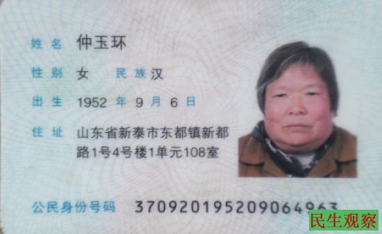 自认为时运不佳的仲玉环,女,出生在1952年9月6日,现住山东省新泰市东都镇新都路。身份证号是:3709205209064691955