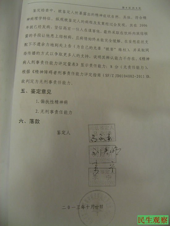 张海彦真的有精神病吗?想起了他第一次出精神病院时,警察让他写的保证书也许能说明一些问题,“ 一、不准再在网上发布“反动言论”,二、不能再缠访、非正常上访,三、不准非法“串联”。还让张写以后保障不上访,遭到他的坚决拒绝。”