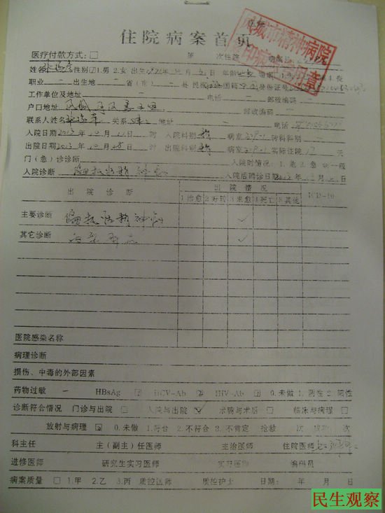 张海彦:我患有肺结核病,在里边时间长根本受不了,在关押12天后,两会也结束了,他们对我的维稳也该取消了,我妹妹找到公安局要求放我出来,他们还让我家人拿着自己的医保卡来精神病院结账,才把我放出来。他们太过分了,把我关进去,还的我自己拿钱才能出来,