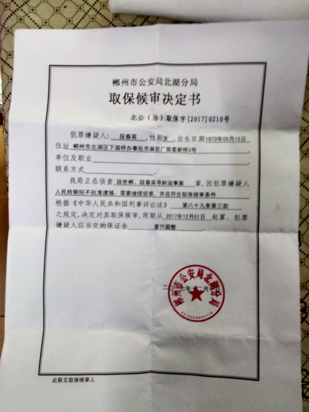 志愿者:您的女儿段春凤告诉我说,2018年春节刚过,地方官员为了“两会”维稳,又以给您治病为由将你绑架关押到了郴州市第三人民医院?