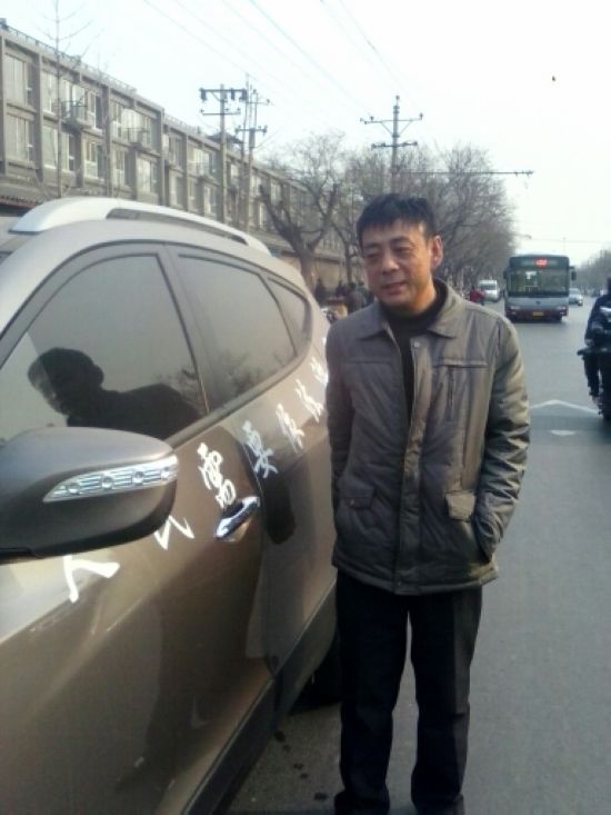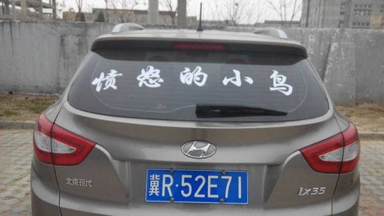 在北京市永定门西街国家信访局北侧的一辆深灰色的北京现代轿车吸引了和我同行者的目光,顺着他的指引走到近处时才发现这个车的周身都喷着白色的字,车尾处“愤怒的小鸟”几个字最为显眼,车的右半身是“山西公检法勾结哪家强?”左半身则是“人民需要依法治国”几个字。张文凯是这个车的主人,1969年4月5日出生于太原市万柏林区。现在的张文凯长期居住、工作于北京,经常奔波于单位和信访部门之间,用张文凯的话说,这样告着他们心里还舒坦点。