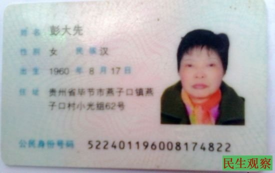 2008年7月初,在北京上访的彭大先,被村支书、信访局和法院的几个人在北京南站附近抓住强行截回,当时在北京出租屋内的衣物等日用品他们都没来得及给她收拾。她被带回后随即就被关入毕节市洪南路康复精神病院,随身携带的银行卡、手机、24页上访材料、身份证等物品全部被收走,没有给她做体检,而是直接拉进屋子绑在床上给她打针、灌药,他们把药弄成粉末往嘴里灌,不让她出去活动,也不让家人见她,政府人员找她家属签授权委托书时,是找她嫂子签了字,这也成为官方送她进精神病院的唯一理由,而作为嫂子根本不具备监护人的权利签署委托书。