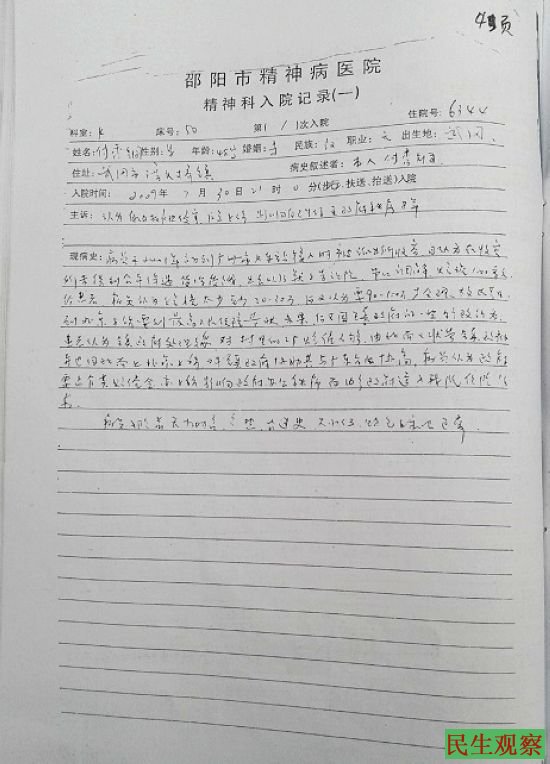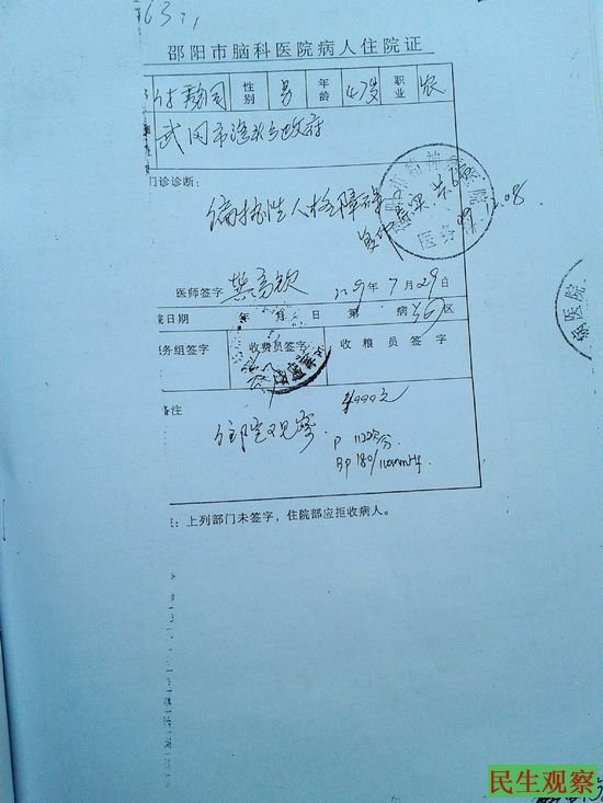 湖南省武冈市农民付秀铜上访被镇政府送精神病院
