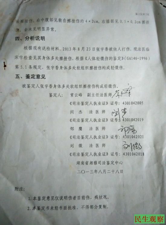后被截访人员押回长沙后,张宇香一直报警但拒绝受理,直到5月9日,派出所才为其做了笔录,但做完笔录却不给回执单,后面也没有结果。