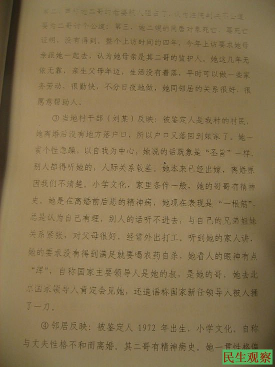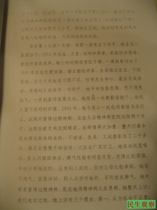 第三是想念家人,在里边时间久了,孤独的实在受不了的时候,何燕就在里面大吵,要求见见家人,医院受不了她的时候就通知政府,经过政府层层批示得到许可,她的家属就能来看她一次。