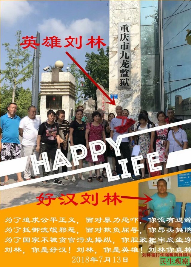 【民生观察2018年7月14日消息】本网获悉,昨天重庆各区县维权人士欢迎重庆市礼嘉维权英雄刘林出狱,刘林因维护自己的土地被强占,而被构陷冤关三年的大牢。