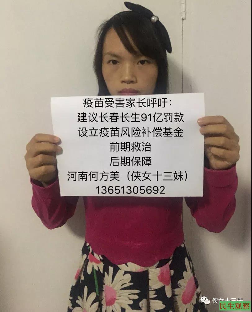 河南新乡疫苗受害家长何方美(网名:侠女十三妹)13651305692(微信同步)