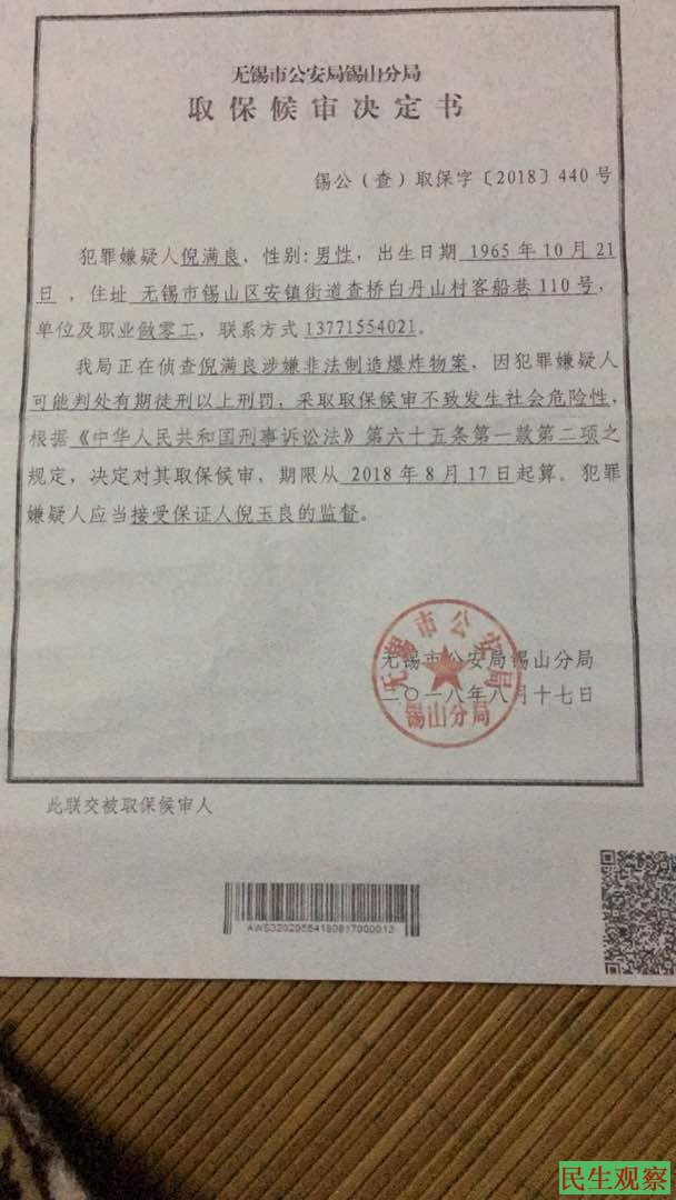 无锡倪满良被先拘留后开决