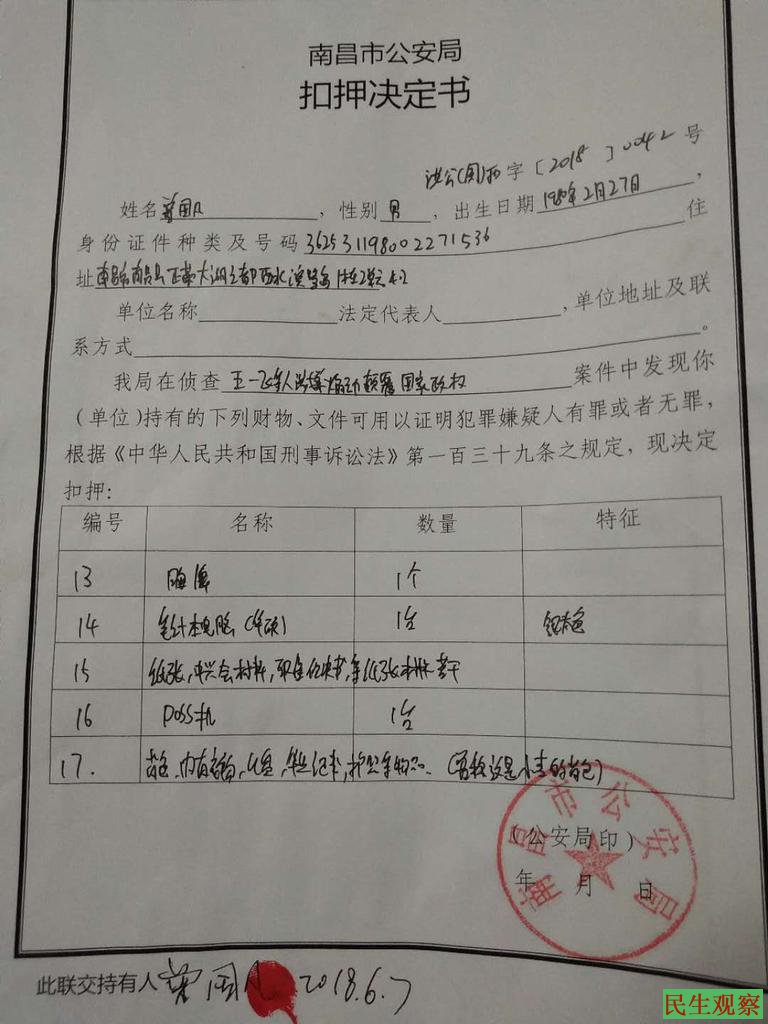 据悉,2018年6月6日,江西南昌曾国凡夫妇被南昌市公安局从家中带走,第二天,曾国凡的住处遭到搜查,南昌警方在其家中抄走笔记本电脑、文件材料、poss机等物品。同日被抓的还有湖南公民王一飞。警方怀疑3人与“兴华会”活动有关,随后3人遭刑事拘留,罪名是涉嫌“煽动颠覆国家政权罪”。