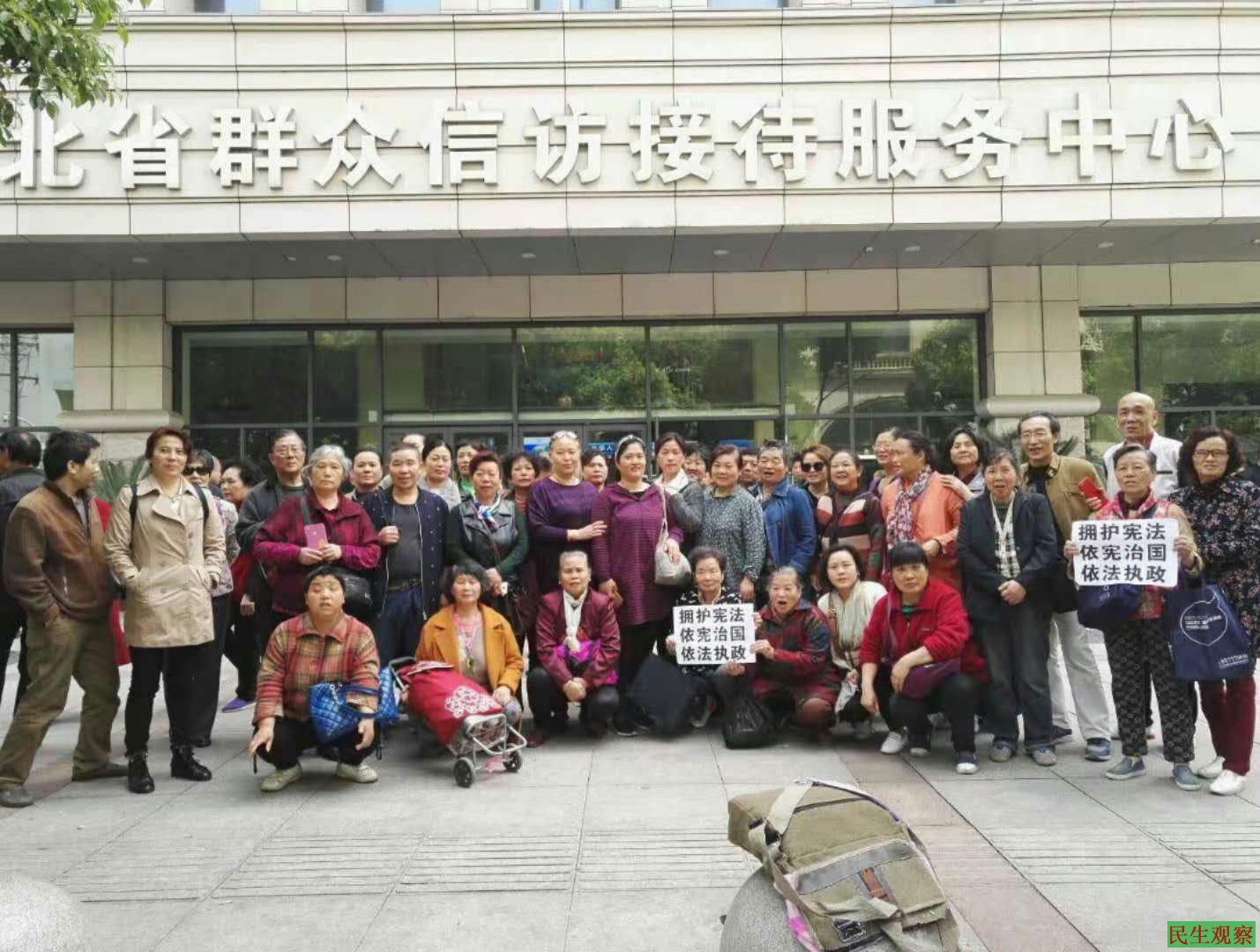 4日上午,武汉市的数十位访民朋友准备上街宣传宪法,督促政府尊崇宪法、维护宪法、切实保障公民的人身和财产不受侵犯。但是,他们刚刚靠近政府大楼时,即被数十名警察包围,强制收缴了大家所携带的宣传宪法的标语。在收缴的过程中,访民要求警察依法出示执法证及扣押清单,但警察置若罔闻,还发出威胁说要拘留访民。最后,数十名维权人士来到政府大楼对面的大街上,列队高唱国歌“起来!不愿做奴隶的人们!把我们的血肉,筑成我们新的长城!中华民族到了最危险的时候,每个人被迫着发出最后的吼声。起来!起来!起来……”