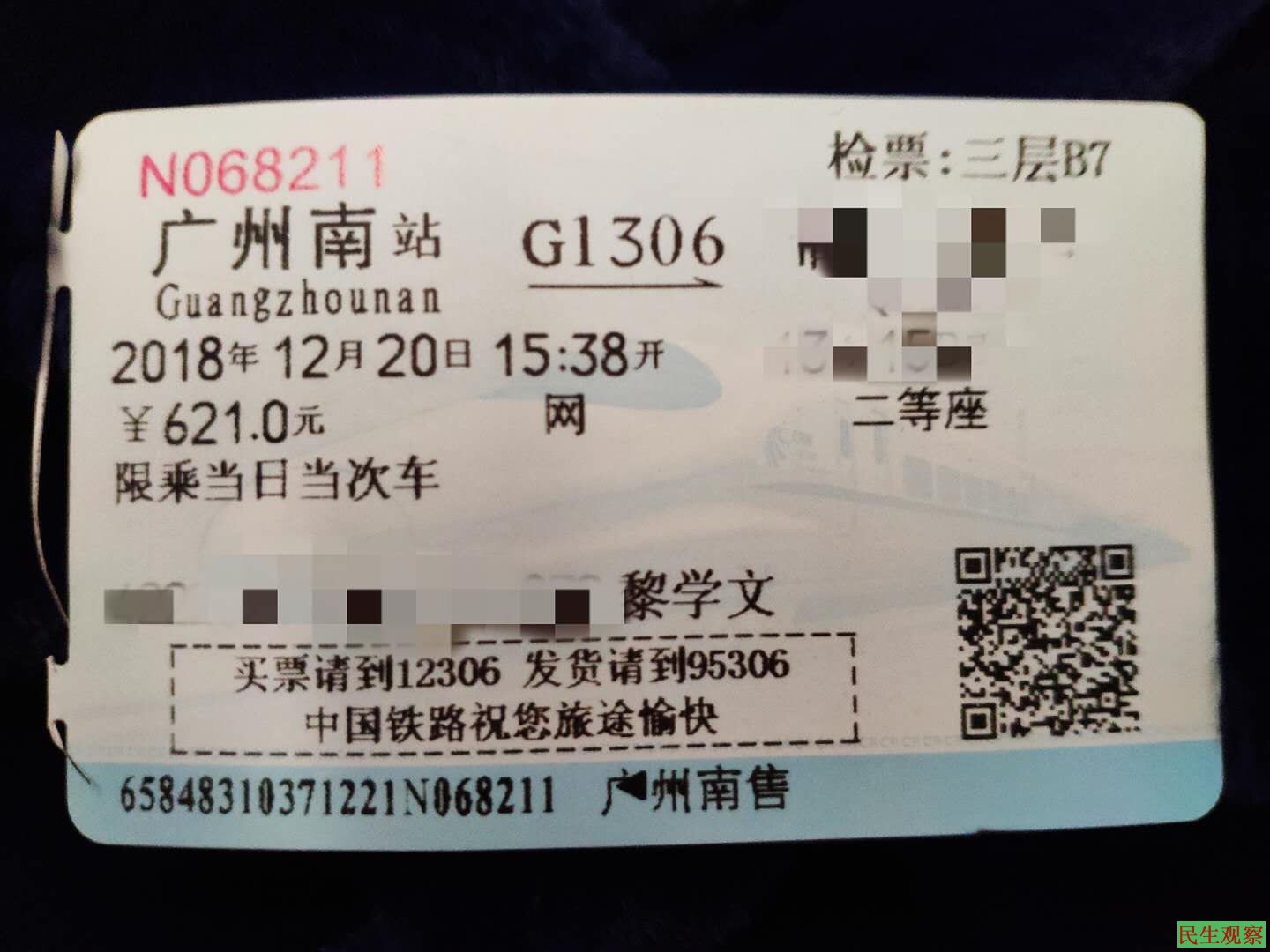 警方在提出强制要求二人离开广东后的半个月,12月19日,佛山国保找到黎黄夫妇,再次要求二人赶快搬离,并取得二人身份证后,购买了两张开往湖北的高铁票,最后通牒第二日必须离开,且暗示(如果不走)将会用强制手段驱赶。12月20日下午三点多,黎黄夫妇在广东省、佛山地方警方的逼迫下登上高铁北上。