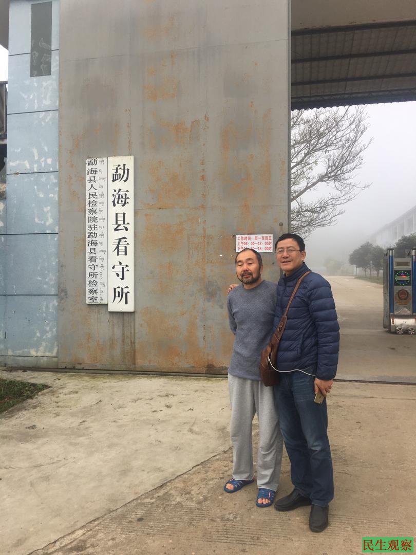 【民生观察2019年1月5日消息】本网获悉,被云南西双版纳当局以涉嫌“运送他人偷越国(边)境罪”判刑一年的山东枣庄义人张磷2019年1月5日出狱,无锡华春辉等网友前往勐海县看守所前去迎接。